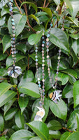 These fun and unique necklaces pair beautiful iridescent abalone with inlaid mother of pearl to create a unique and eye-catching look. Sassy for summer with a tank top or sundress, fun and funky for fall worn over a sweater, or whimsical for winter paired with a leather jacket, this necklace will turn heads any season of the year.