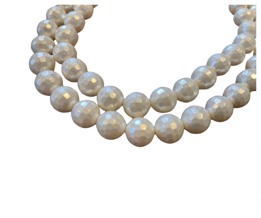 I am so excited about our newest launch... Disco Pearls! These are mosaic mother-of-pearl beads. Think of the art of mother-of-pearl inlay but around the bead. The faceted mother-of-pearl reflects the light off of each surface just like a disco ball... although about a million times prettier!