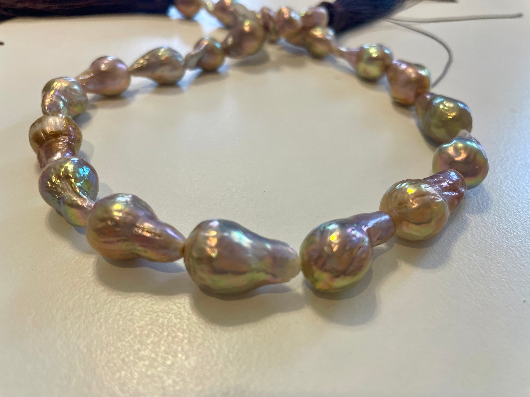 Meet the cutest blush baroque pearl you will ever see. These pearls are SO unique and SO beautiful, I couldnt keep them contained in one necklace! Instead, I have 18 to make into gorgeous necklaces for 18 lucky pearl girls!